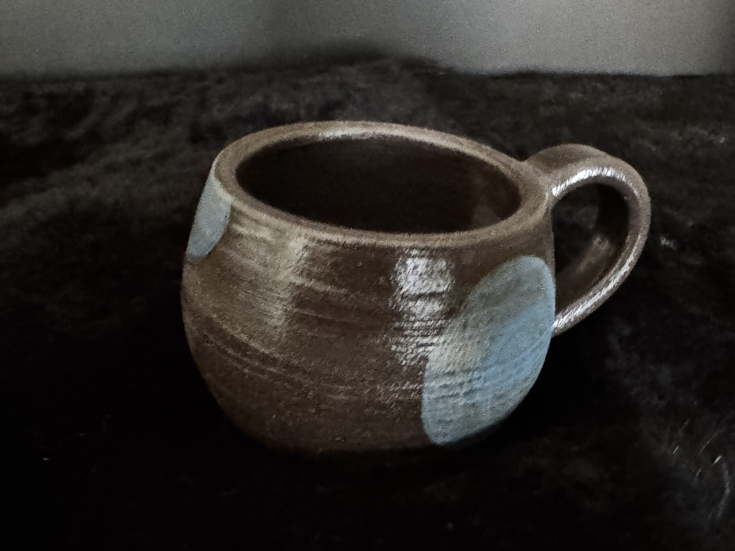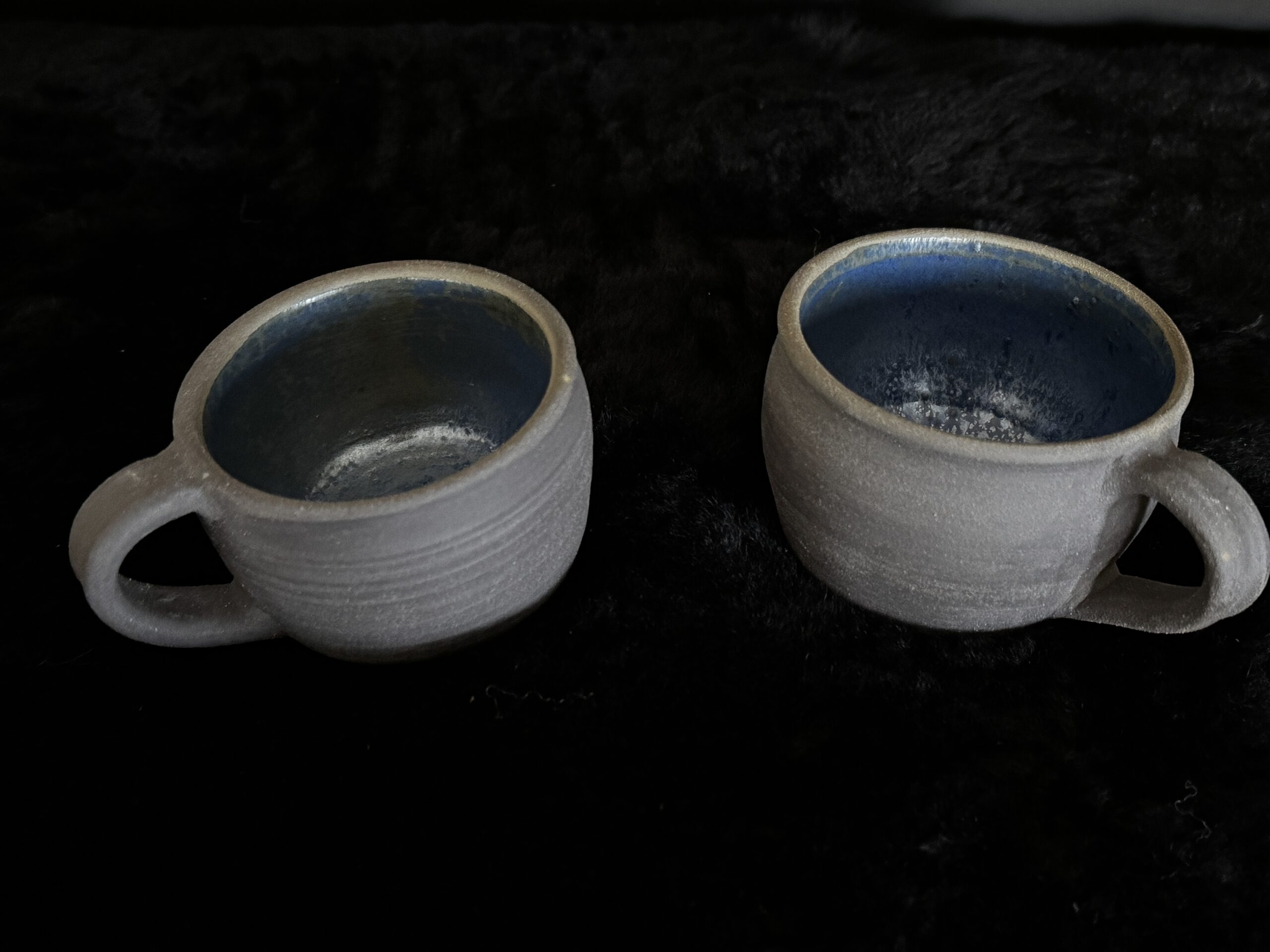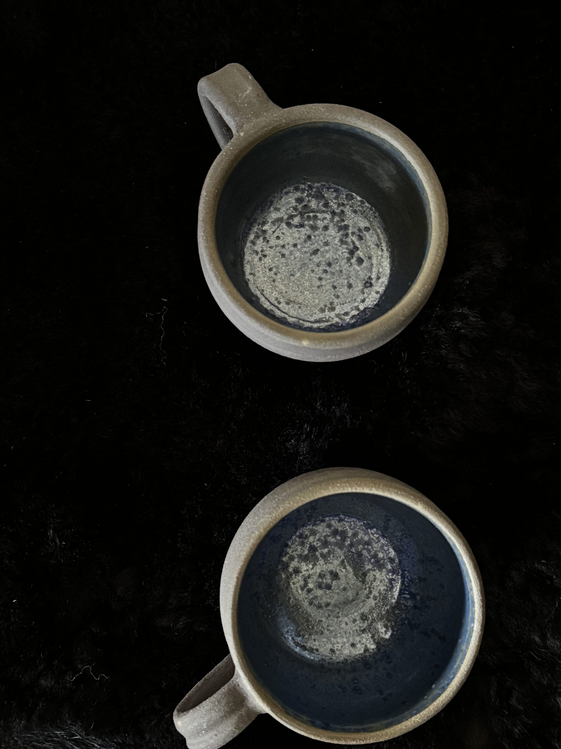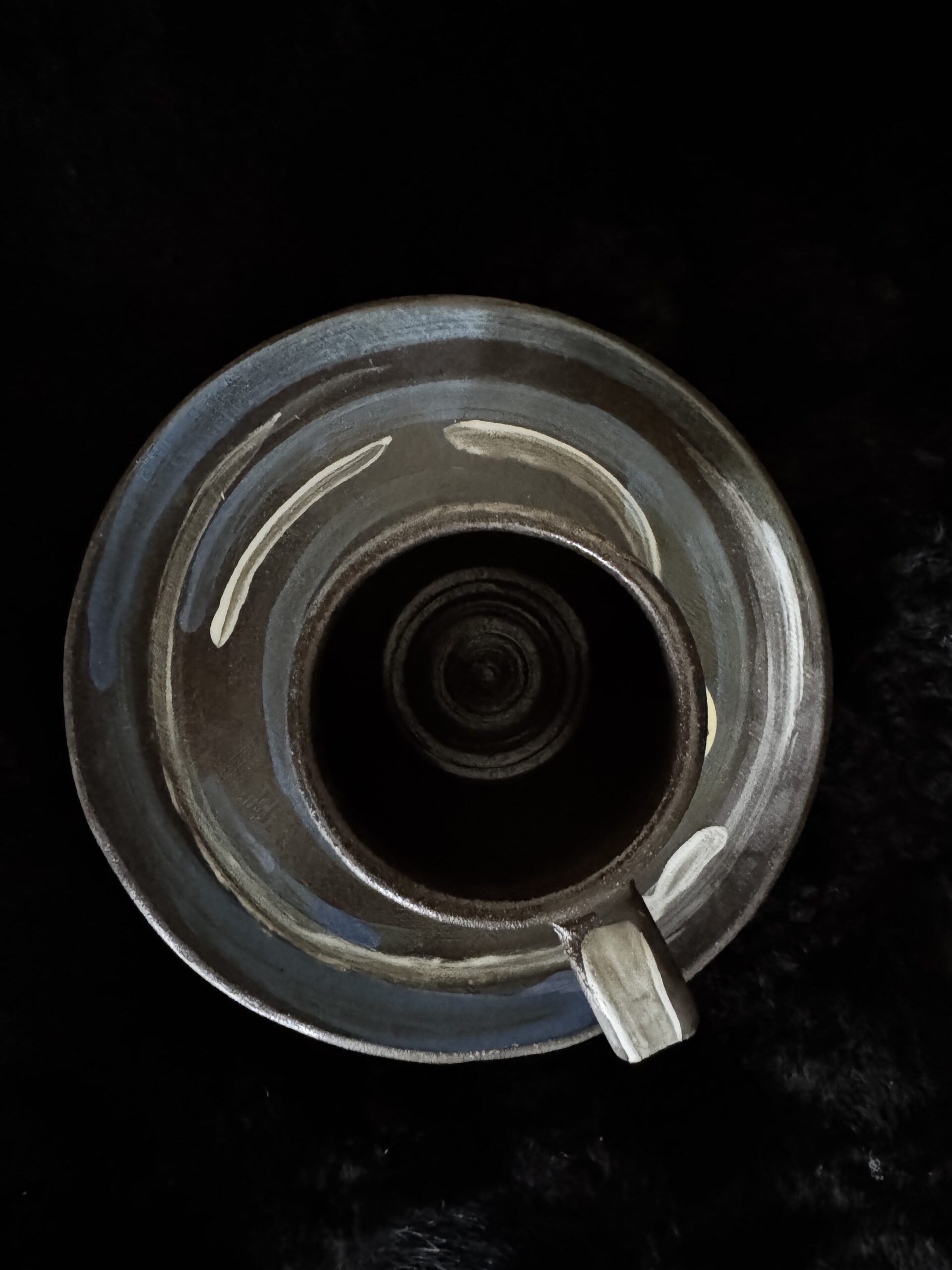 Kruus kuuma joogi nautimiseks, potikedral treitud, mustast savist, käsitsi maalitud angoobidega, erinevad, 1 mummudega, 1 triibuline, 2 seest sinakat Suurus: u 200-230ml Toidusõbralik