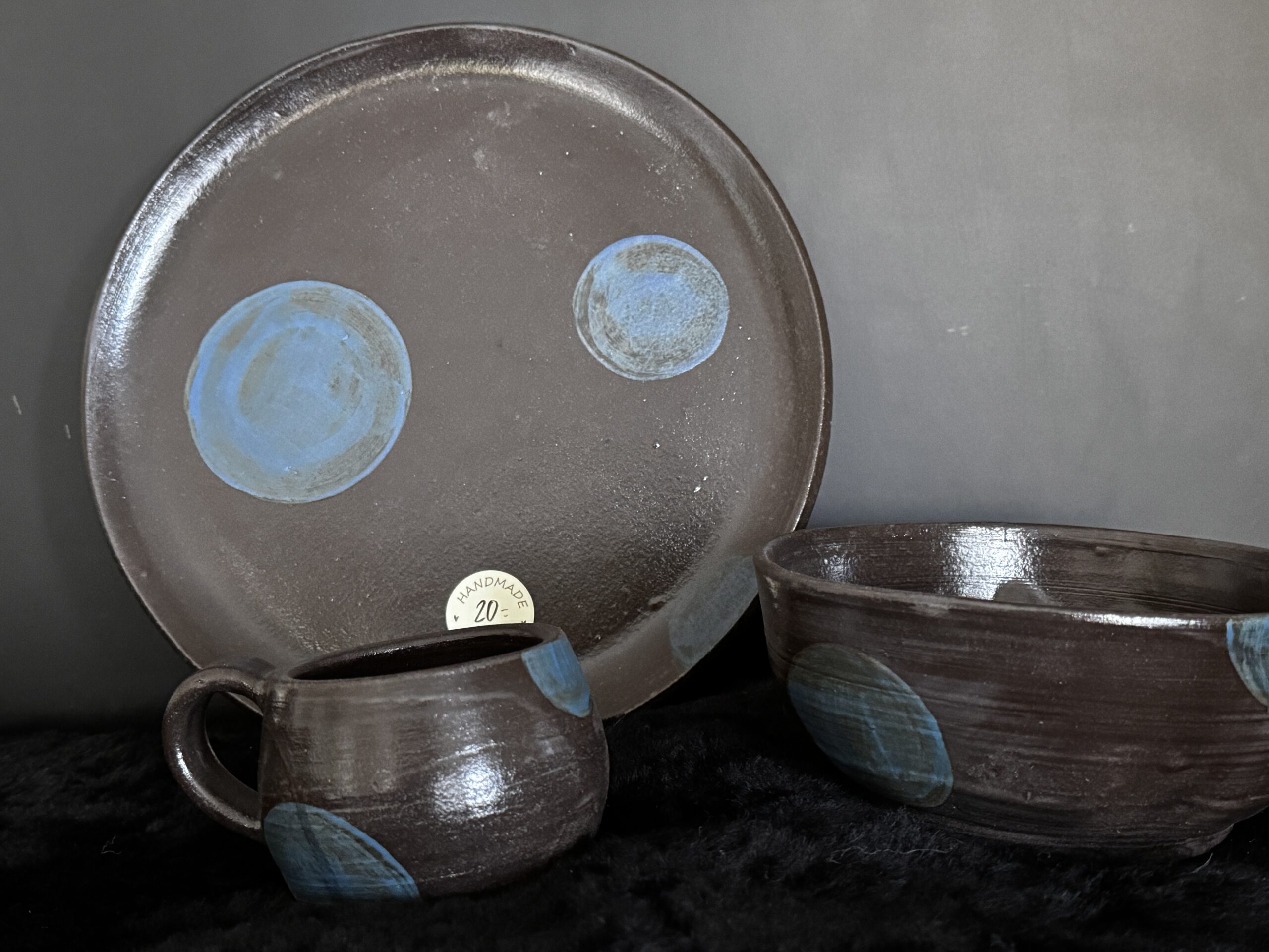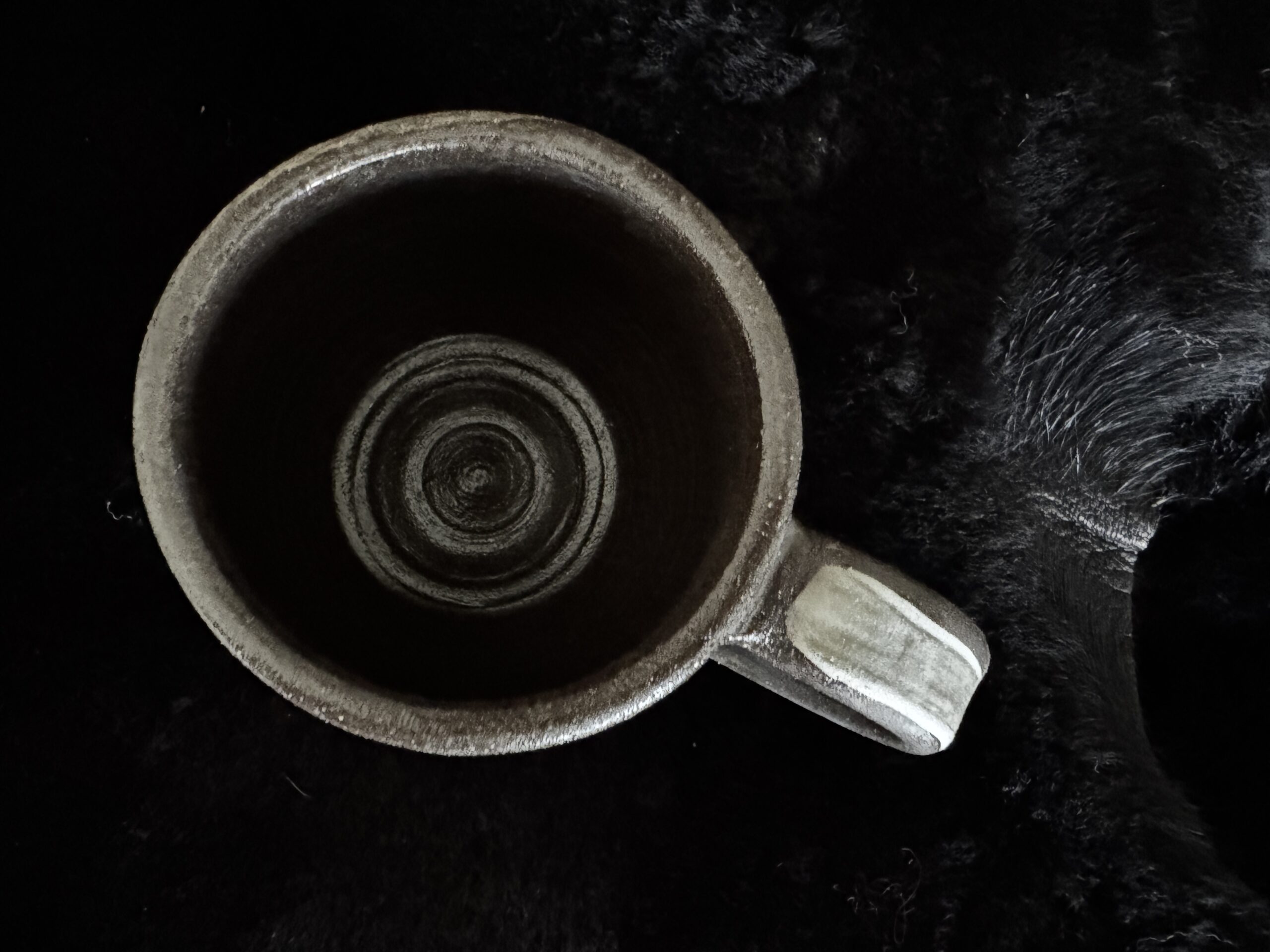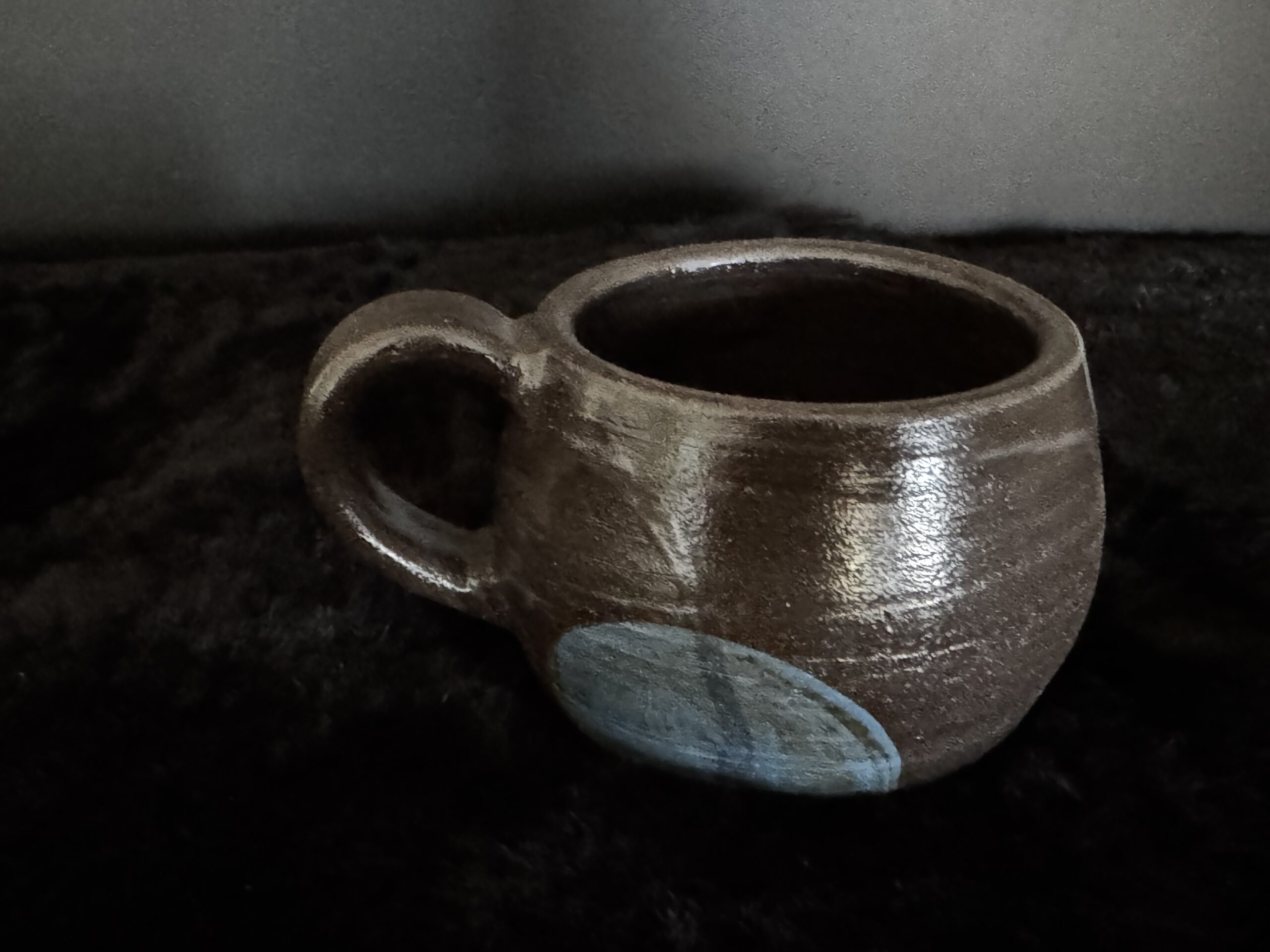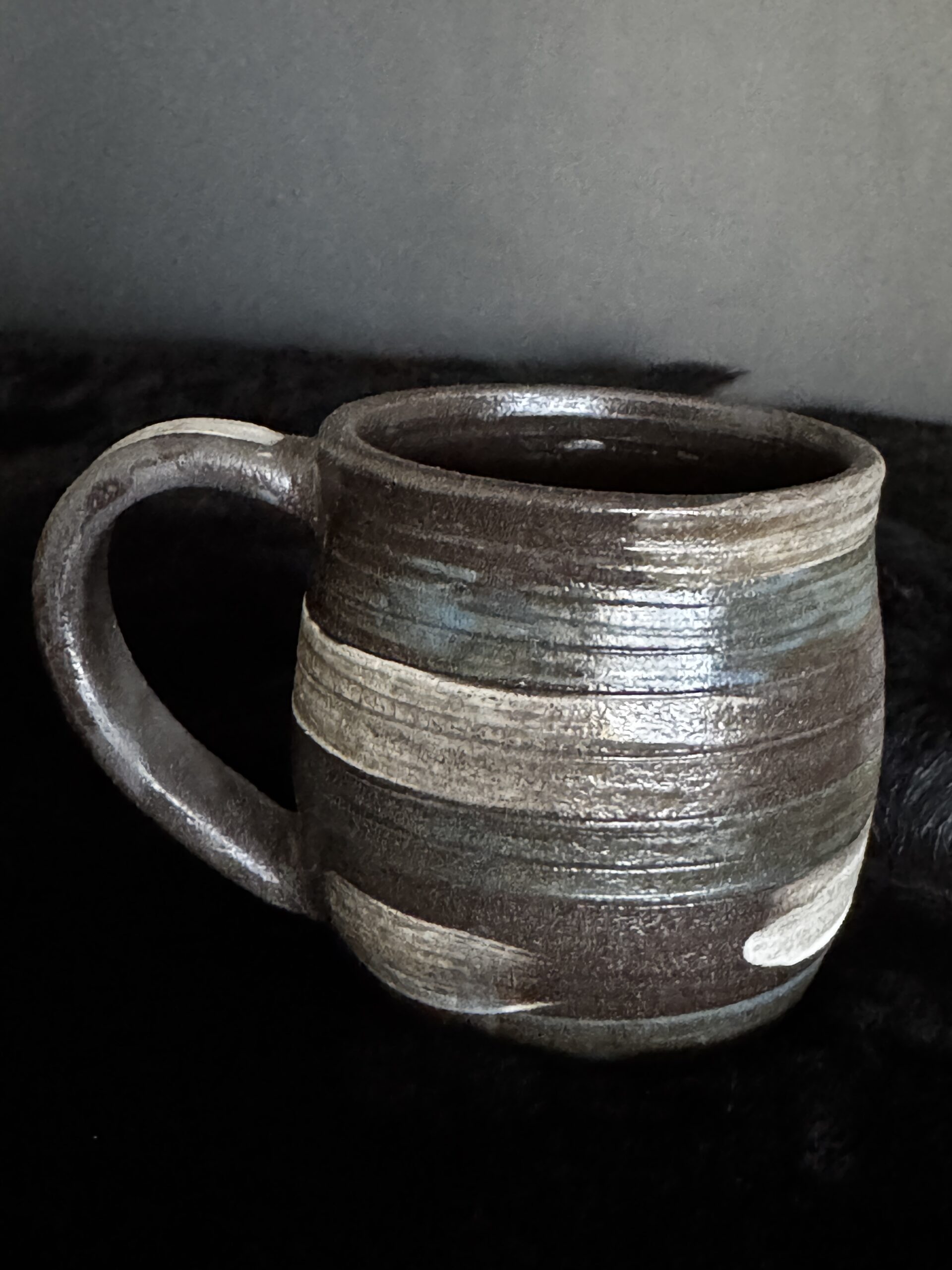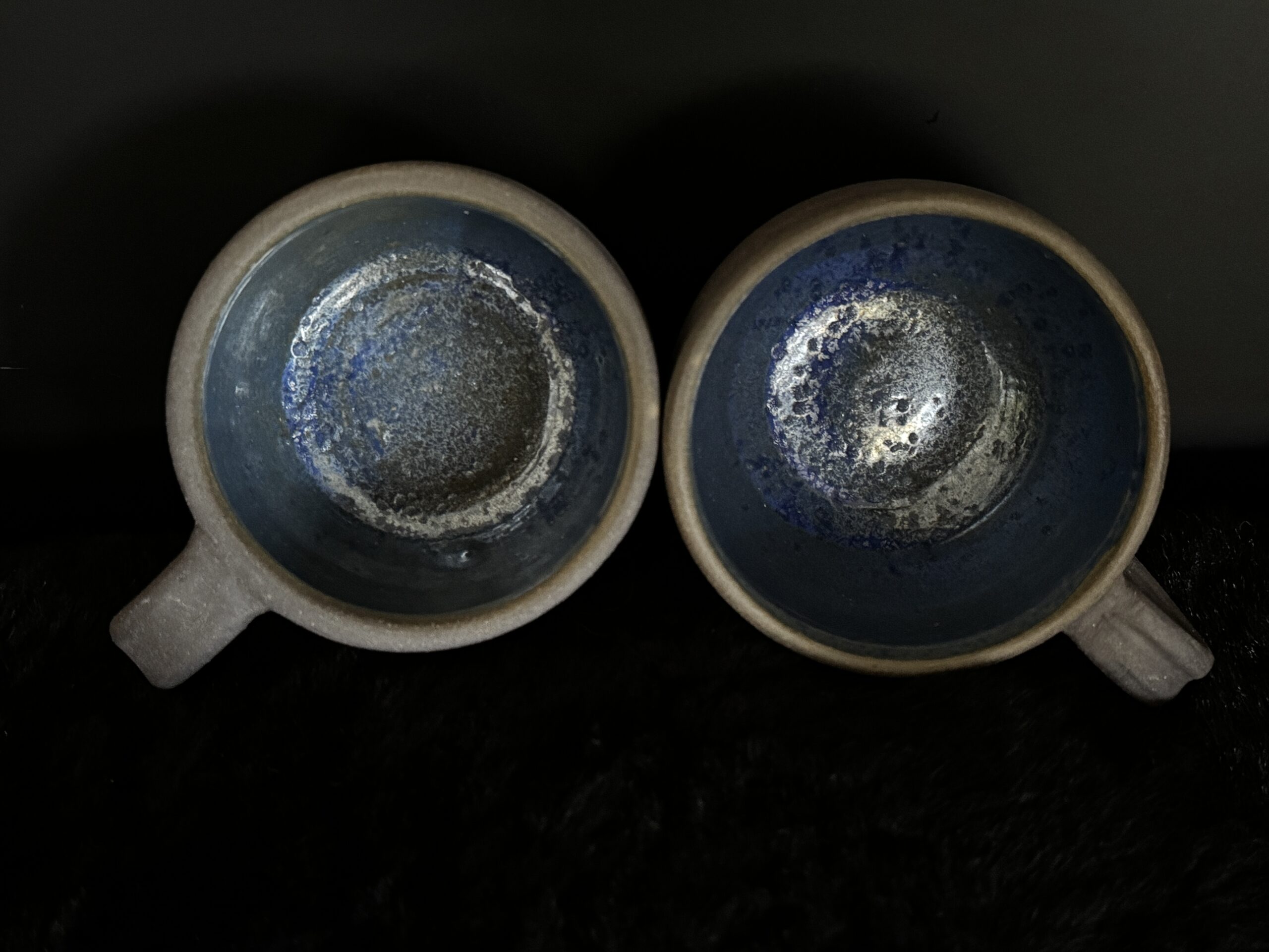 Kruus kuuma joogi nautimiseks, potikedral treitud, mustast savist, käsitsi maalitud angoobidega, erinevad, 1 mummudega, 1 triibuline, 2 seest sinakat Suurus: u 200-230ml Toidusõbralik